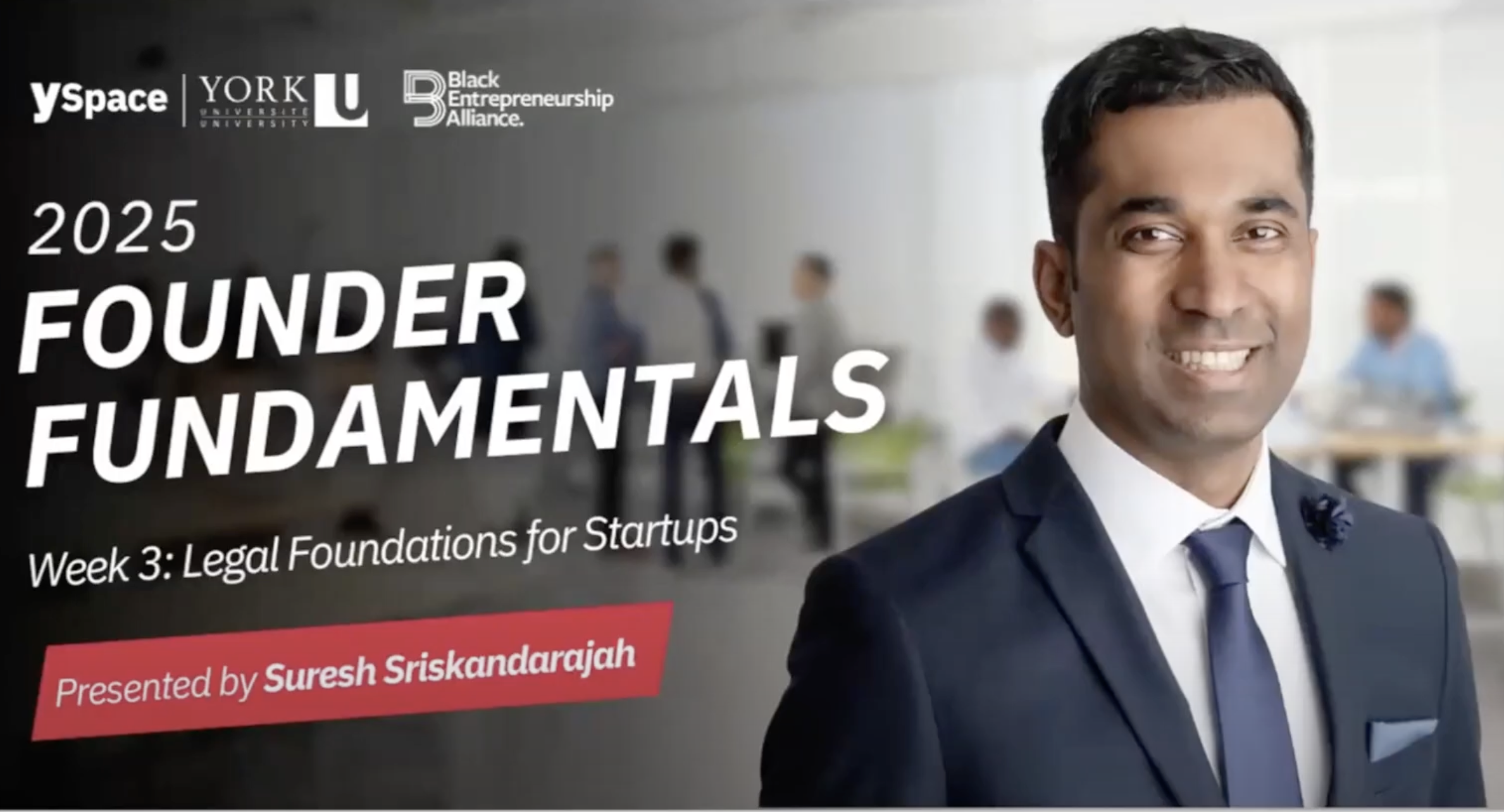 Founder fundamentals series workshop on legal foundations for startups. Read blog | Watch YouTube By YSpace, York University and …